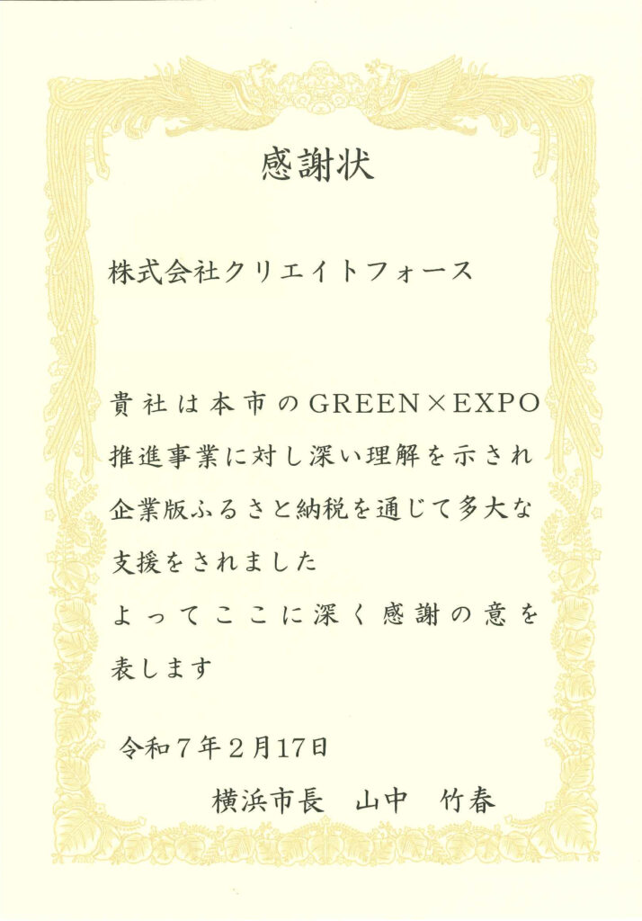 グループ会社の株式会社クリエイトフォースは、このたび神奈川県横浜市へ「企業版ふるさと納税(地方創生応援税制)」を活用した寄付を実施いたしました。